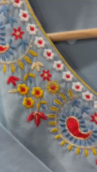 Kurti Work: Heavy embroidery with sequence detailing on kurti & sleeves